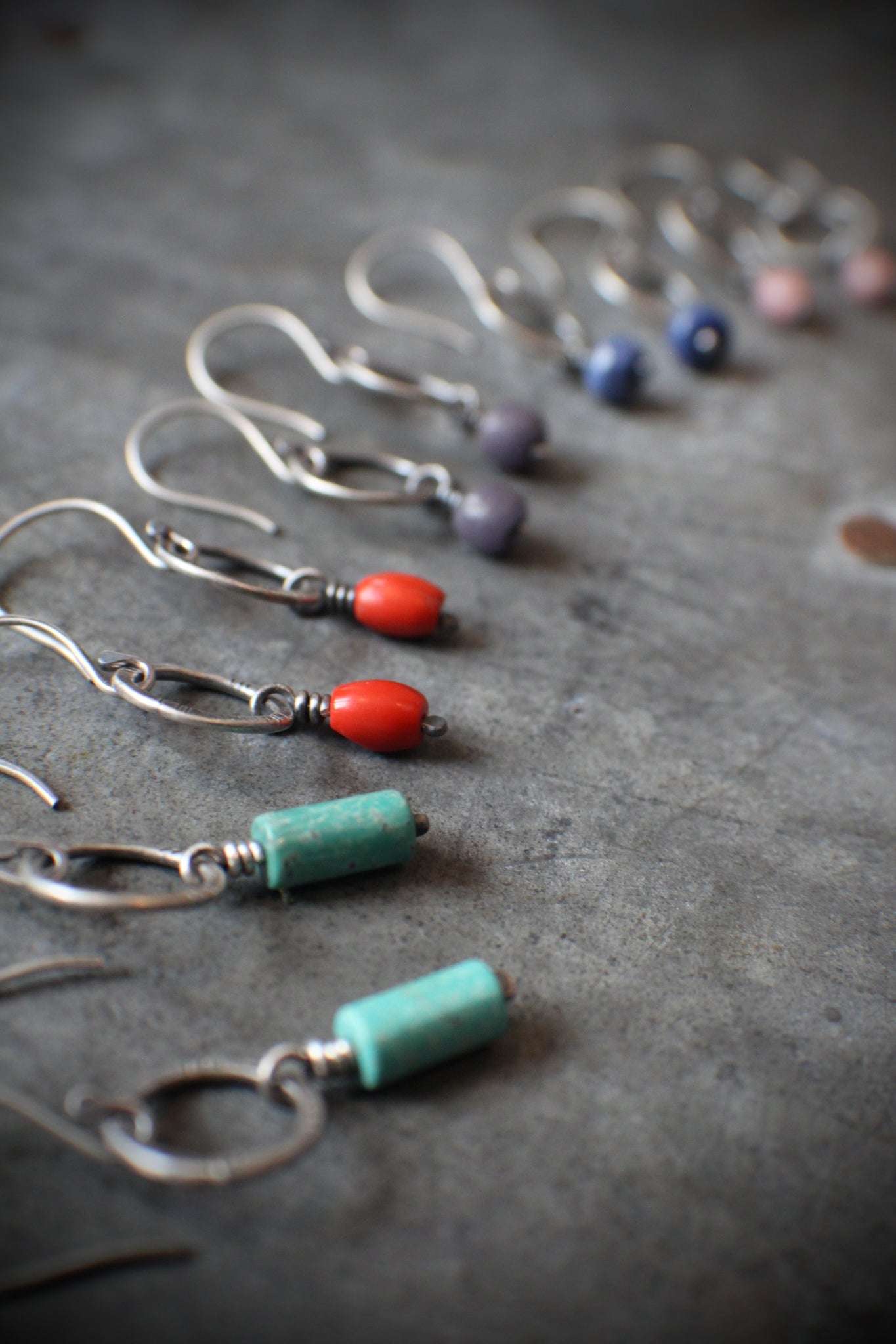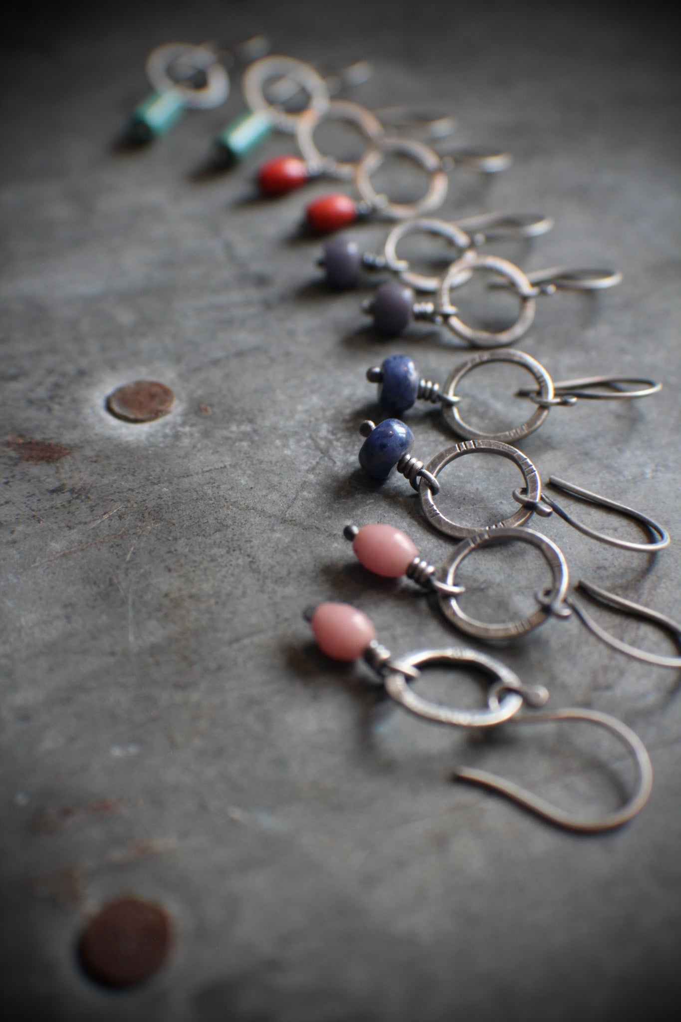 Circle and a Bead, Small!  Measure 1 1/2 inches long from French earwires.  Solid Sterling Silver construction, with a heavy patina.