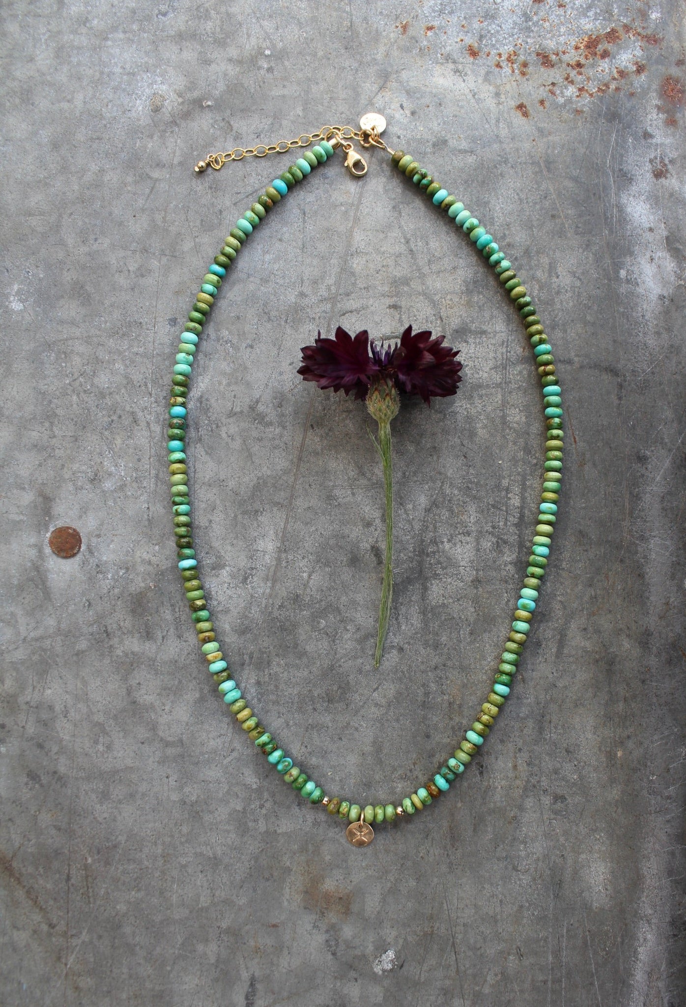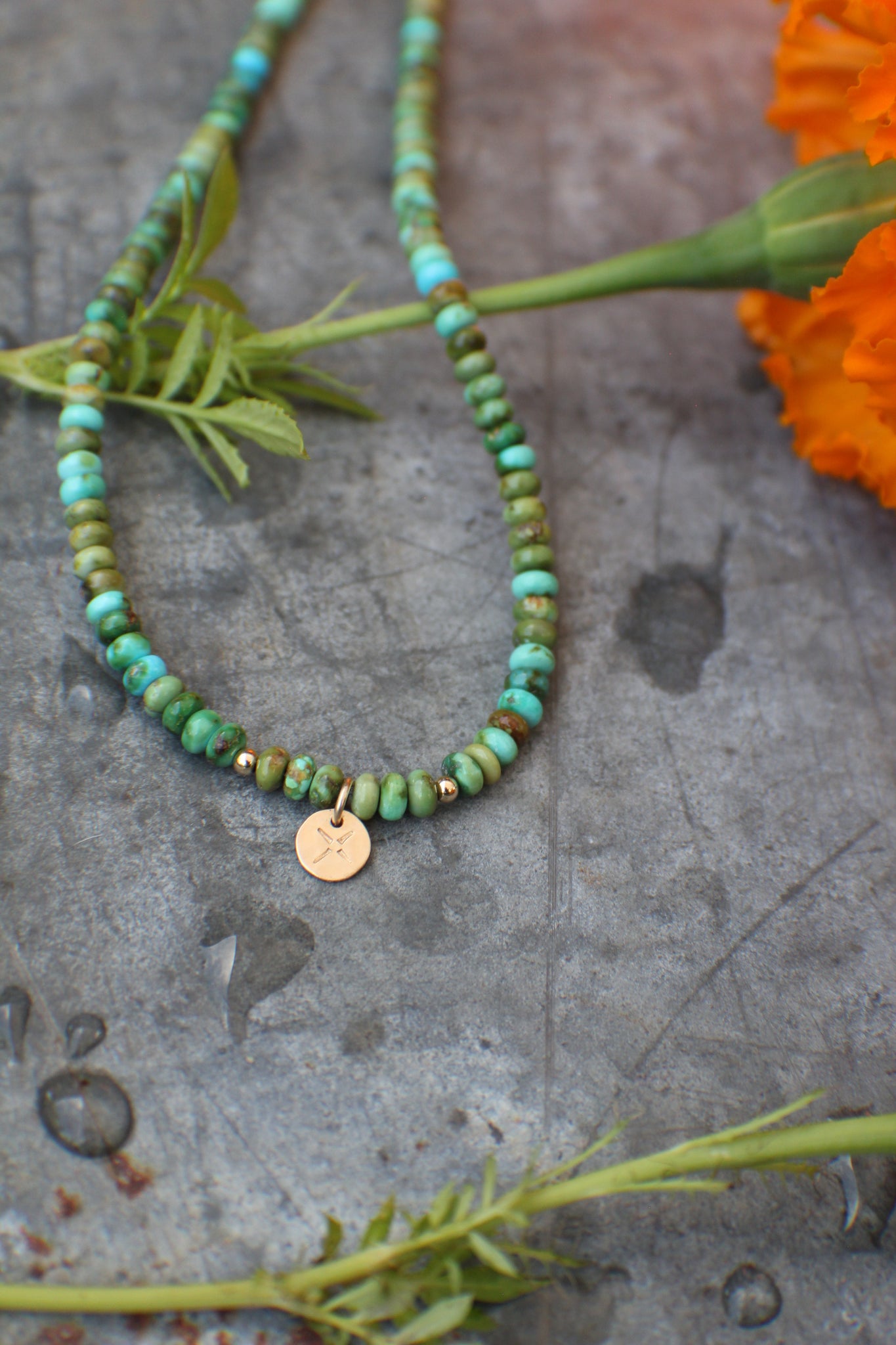 AAA Sonoran Turquoise in delicious Turquoise AND Green! Finished entirely in 14k Gold Fill, with an extension chain for flexibility in length from 16"-18". These are an expansion from 2023's 'Riverbed Baby' collection with higher quality Turquoise and better components. I still wear my barrel beaded one from 2023, going strong!